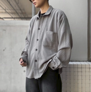 NEW 今の季節におすすめ【全4色】リラックシルエット楊柳シャツ 2025/09/30 独特なシワ加工を施した楊柳生地で仕立てたレギュラーカラーシャツ。 程よいストレッチ性とやや肉感のある肌触りが特徴です。 丈夫でしわになりにくく、吸汗性・速乾性にも優れており今の季節にぴったりの一枚です。 シルエットは程よくゆったりとしたリラックスシルエットでラフな着心地です。