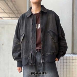 NEW デニムフライトジャケット 2025/10/07 アウター新作商品のご紹介です。 しっかりとした質感のデニム素材のフライトジャケット(税込10,780円) トレンドのフライトジャケットをデニムで作。 ブラスト加工でヴィンテージライクな雰囲気を醸し出しています。 程よいシルエットなのでトップスをすっきりまとめてルーズなボトムを合わせる着こなしがおススメです。 色はモデル着用のブラックとスモーキーなブラウンの2色展開となっています。 ●モデルデータ 身長 170cm 体型 普通 着用サイズ Mサイズ